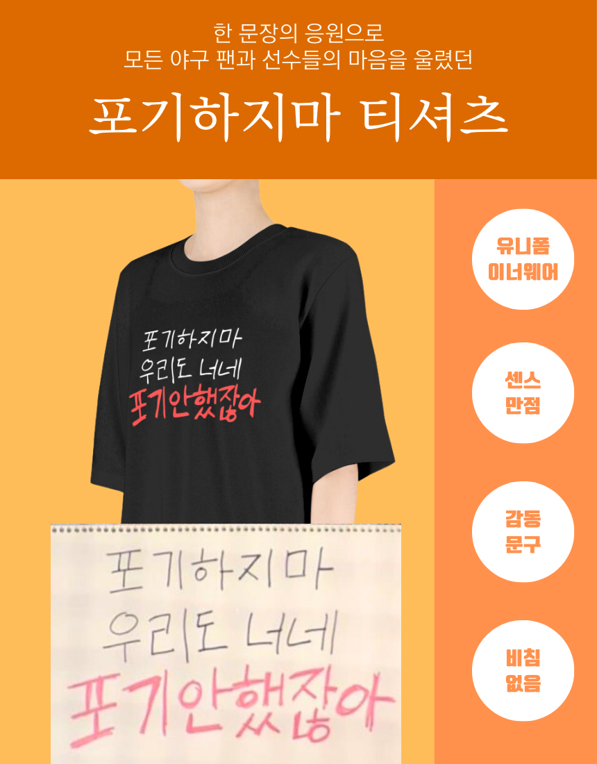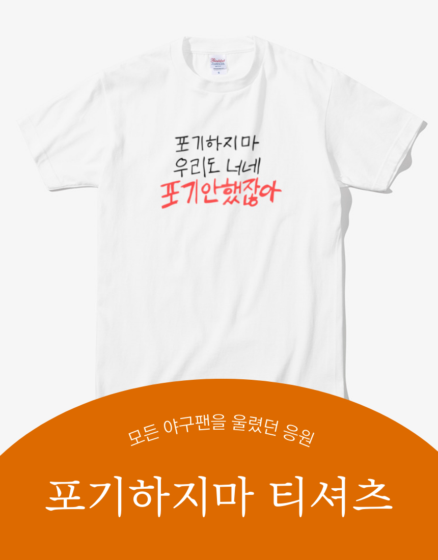 지금 바로 ‘포기하지마’ 티셔츠를 입고, 팀을 향한 응원을 더 크게 외쳐보세요! ⚾🔥