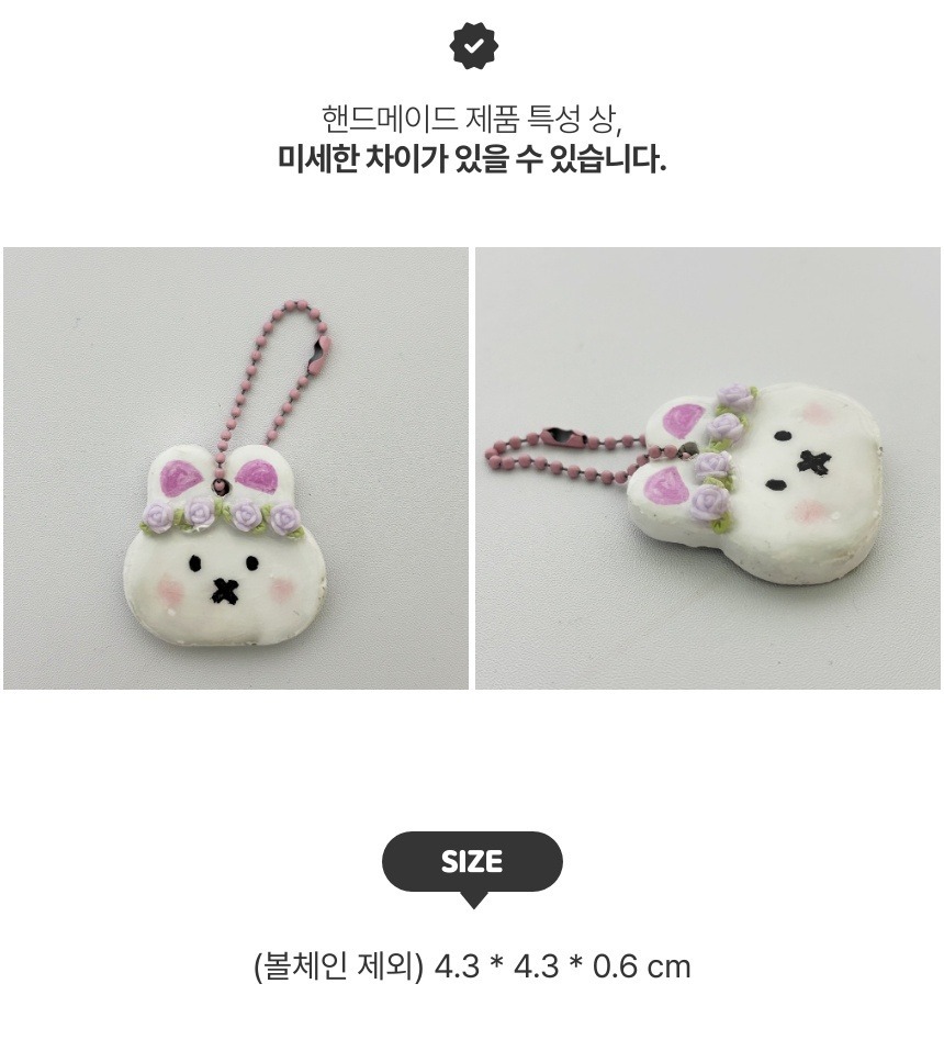 화관 쓴 래빗 토끼 플라워 키링 오브제 레진 점토 핸드메이드