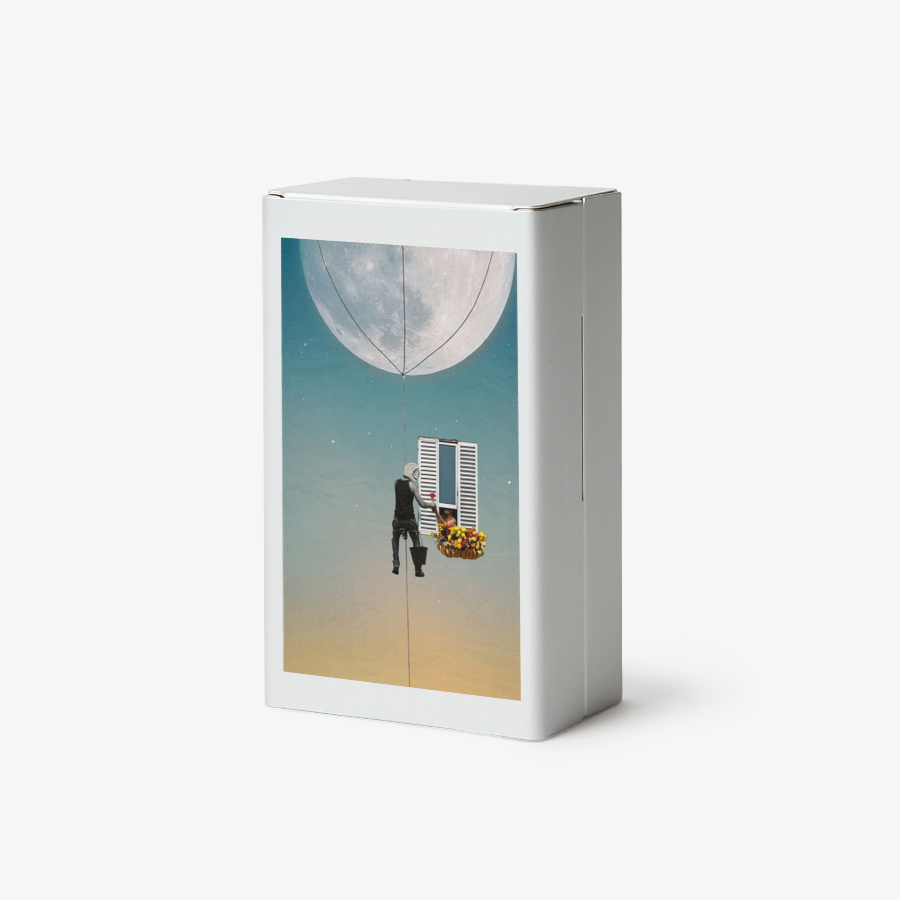'달과 장미 한 송이'는 신비와 아름다움이 공존하는 순간을 포착합니다. 이 콜라주는 누군가에게 달을 닮은 밝고 순수한 마음을 전달하는 듯한 모습을 통해 사랑과 관심이 우리 삶에서 차지하는 중요성을 강조합니다. 환상적인 배경과 현실적인 상호작용이 만들어내는 대조는 일상의 소소한 순간 속에서도 비범함을 발견할 수 있음을 상기시킵니다. 특히 화려한 꽃바구니를 들고 있는 인물과, 그에게 장미를 건네는 인물 사이의 교감은 우리가 서로에게 주는 작은 선물들이 어떻게 마음을 밝게 할 수 있는지를 보여줍니다. 전체적으로 이 작품은 일상의 소중함과 인간 관계의 따스함을 느끼게 하며, 어떤 형태로든 사랑을 전달하는 것의 가치를 재조명합니다.
