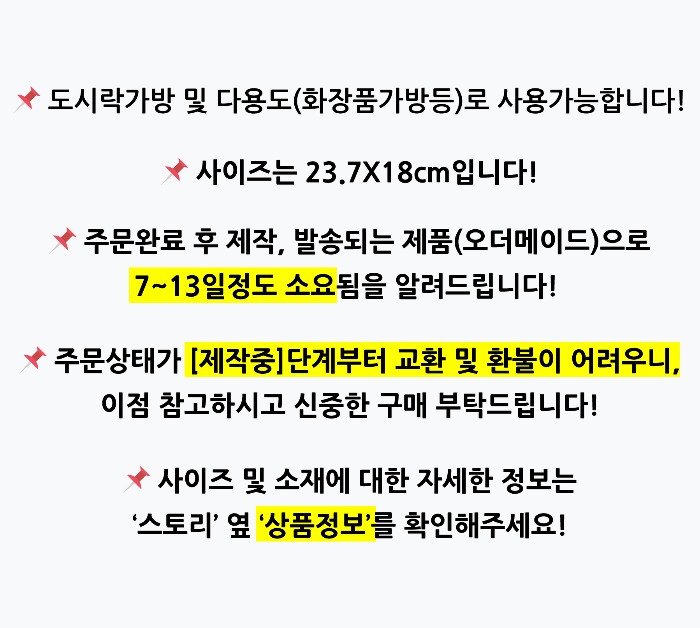 모든 마플샵제작배송 상품은 주문 제작 방식으로 제작되어 단순 변심으로 인한 교환/환불이 불가합니다.
