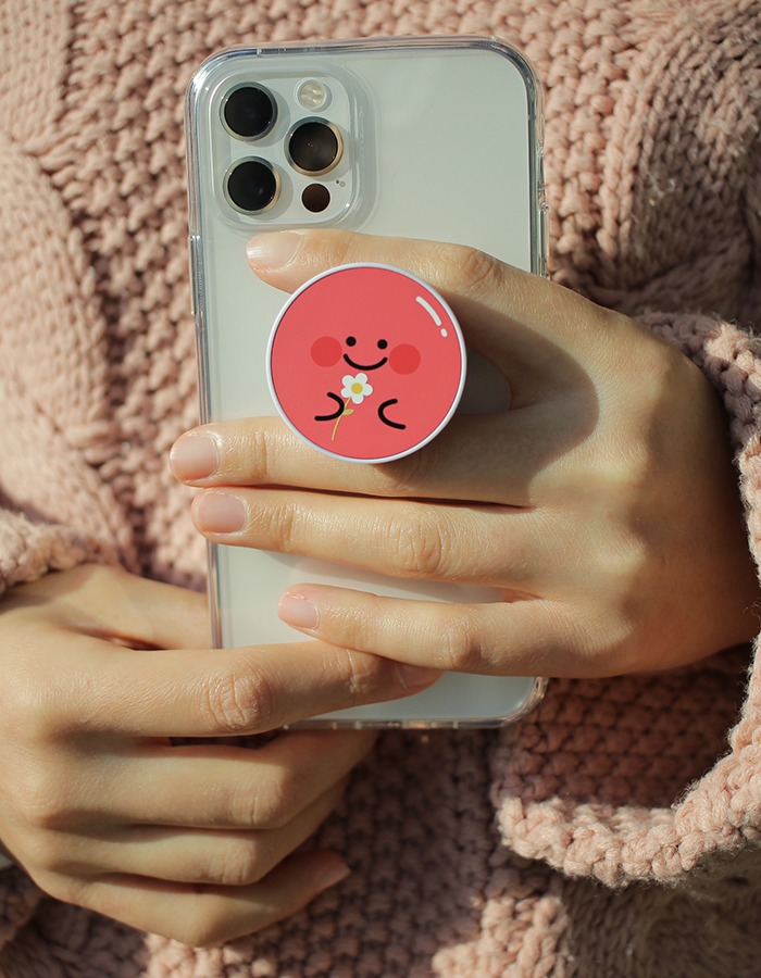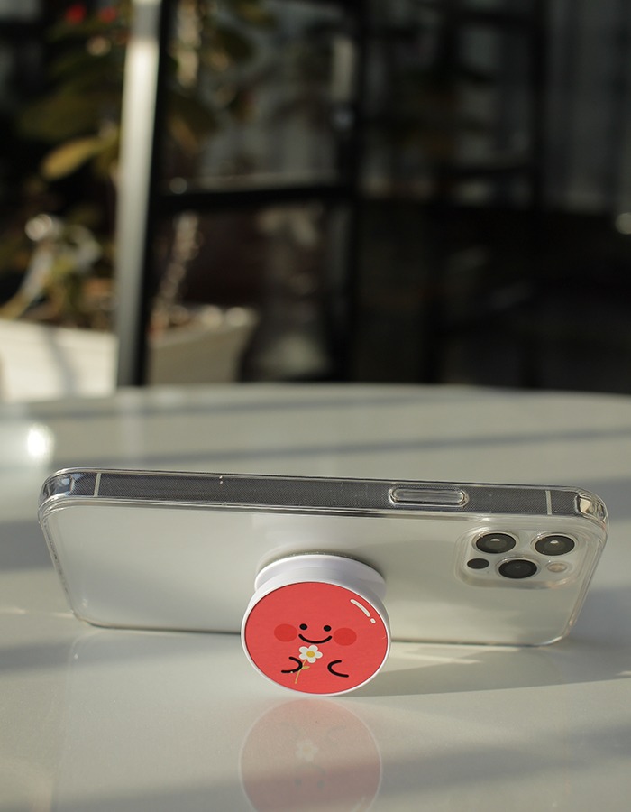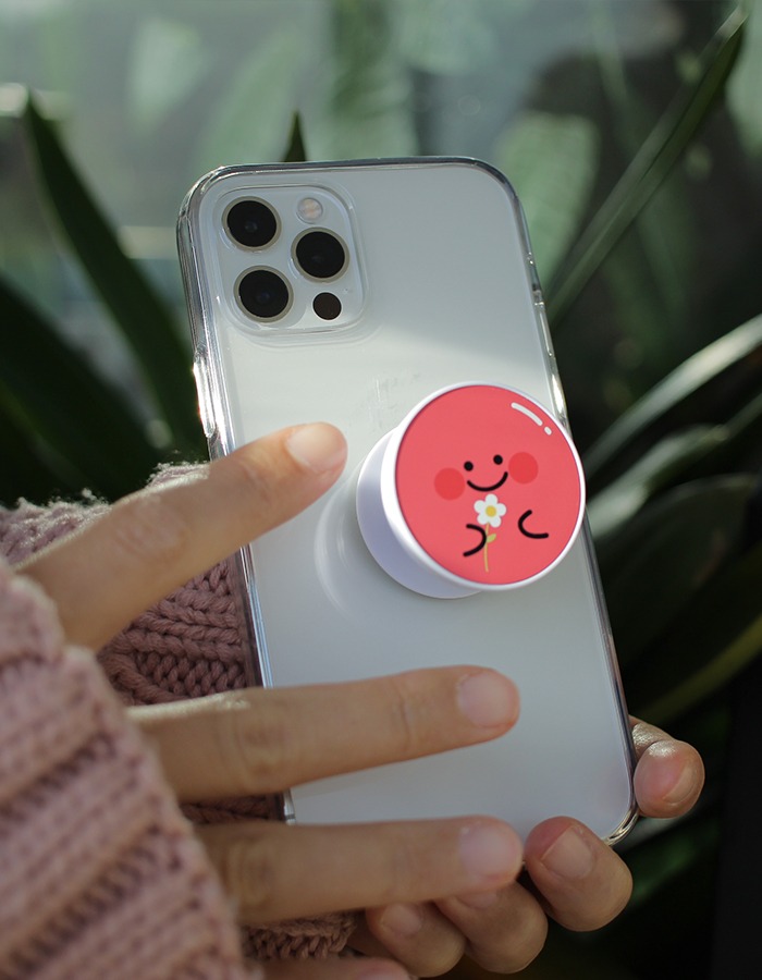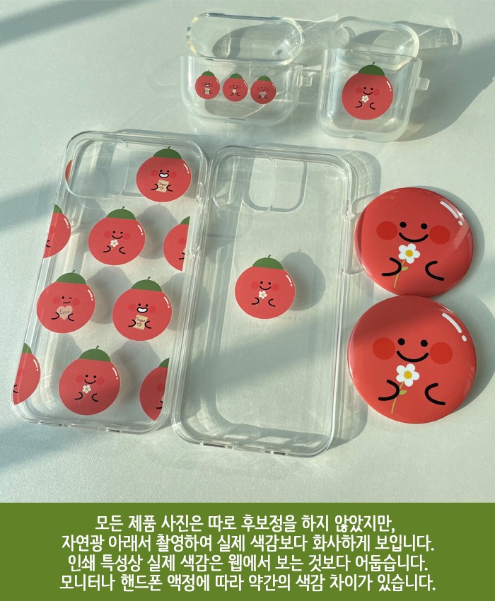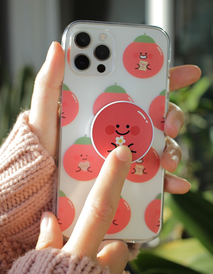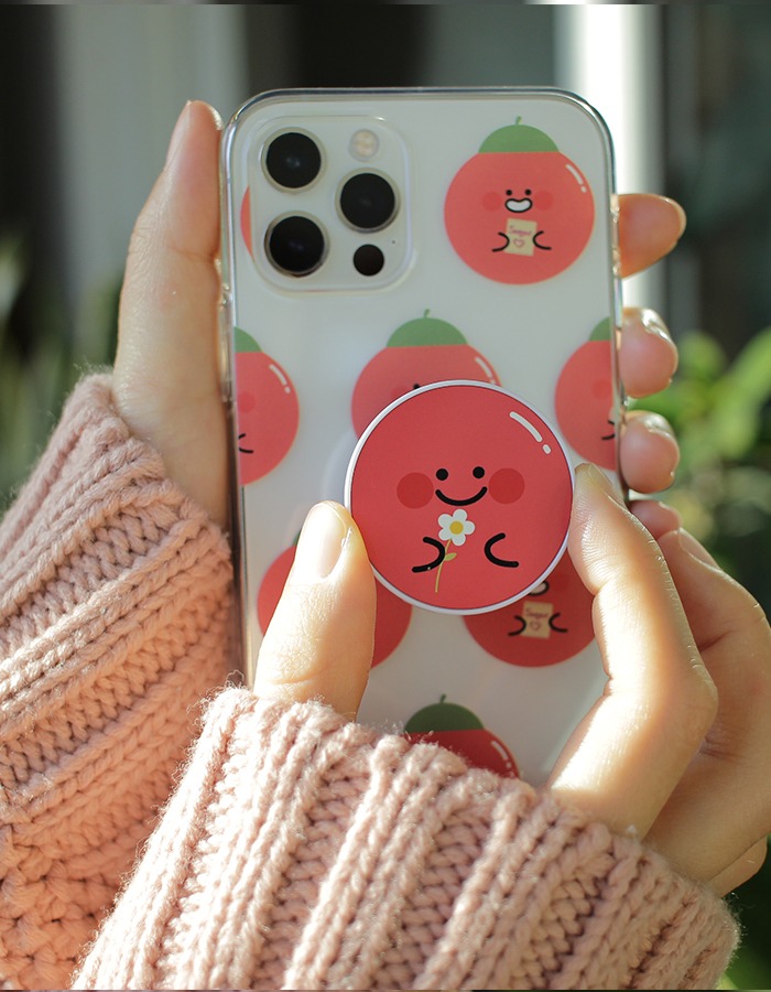 붙였을 때, 젤리 케이스의 도마도 색보다 그립톡 도마도 색이 살짝 더 진해요.