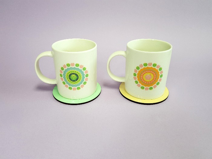 특수 코팅된 인쇄 면과 코르크로 제작된 코스터입니다. 방수 처리가 되어 색바램 현상이 없고 색상 표현이 잘되는 것이 특징입니다. 동일한 디자인 2개 수량 세트로 제작됩니다.