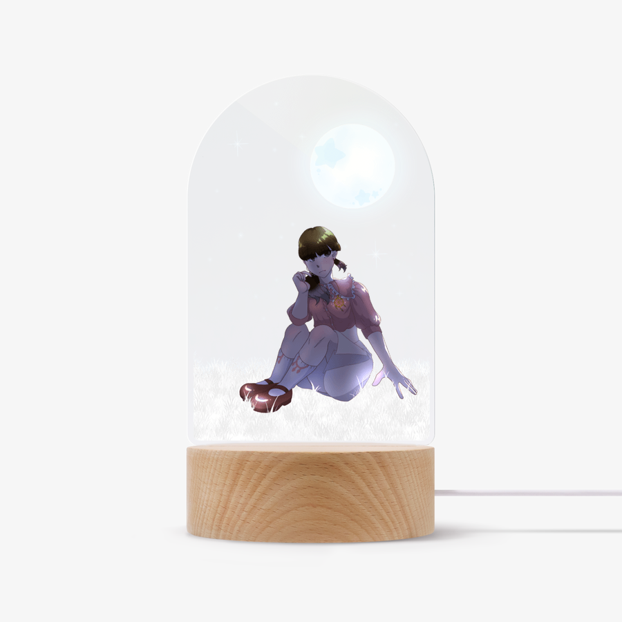 리샤의 오너캐 '리샤'가 달 아래에 앉아있는 아크릴 무드등입니다.
