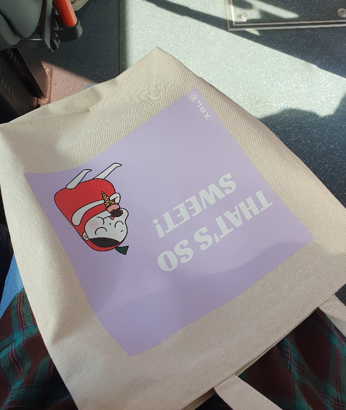 여름에 들고다니기 좋은 에코백입니다. 짱짱하고 A4파일도 충분히 들어가는 사이즈에요