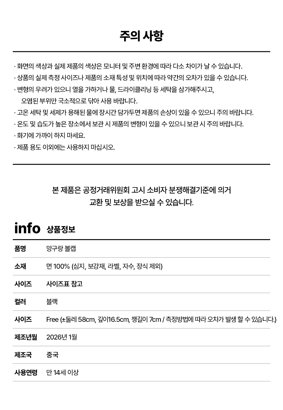 - 맞춤 제작·신선식품 등은 환불·교환이 불가합니다.