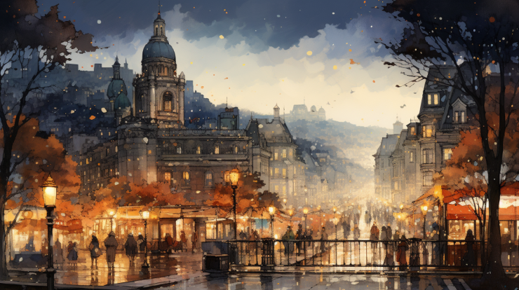 감성적인 유럽 야경 수채화 틴케이스 - 1