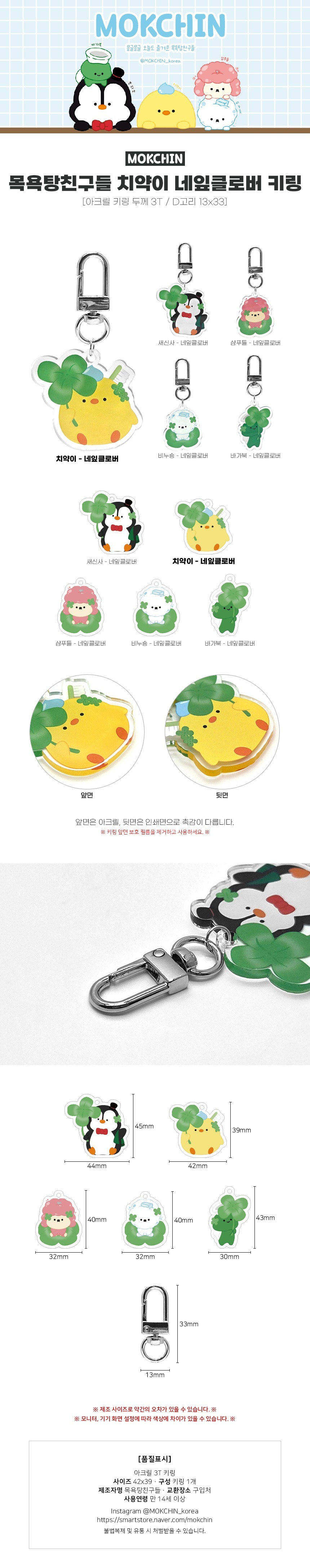 목욕탕친구들 치약이 네잎클로버 키링 캐릭터 굿즈 아크릴 키홀더