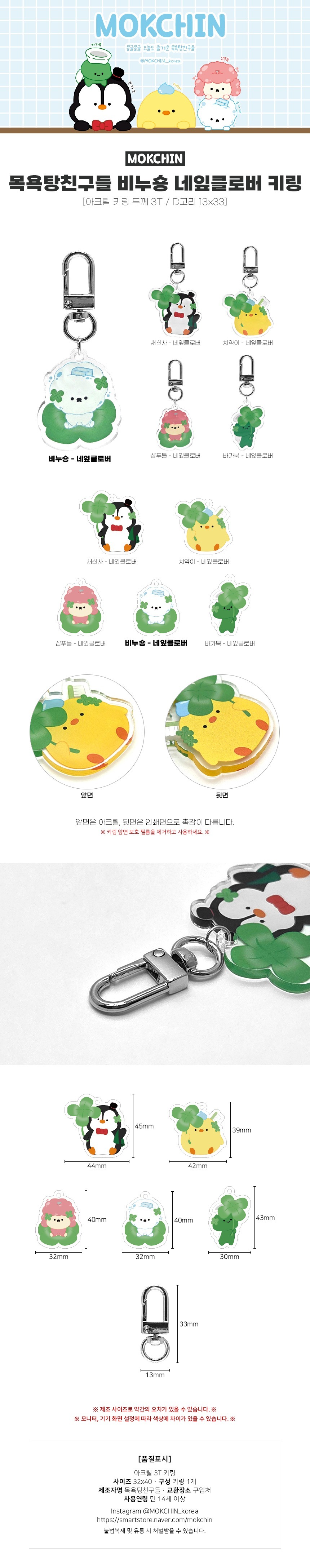 목욕탕친구들 비누숑 네잎클로버 키링 캐릭터 굿즈 아크릴 키홀더