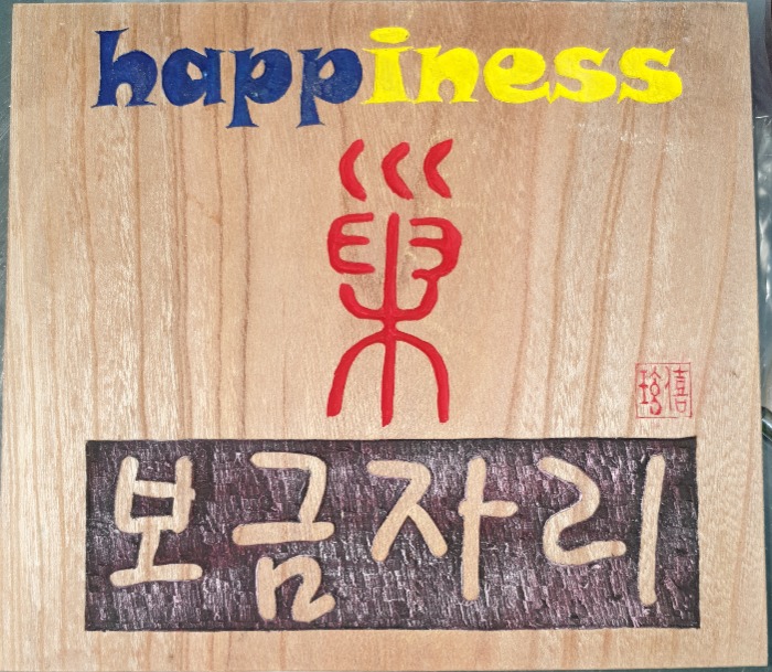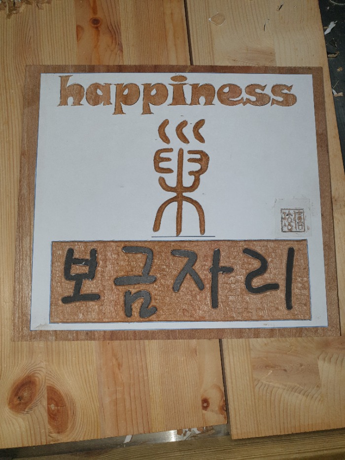 웃음과 즐거움이 집안 안에 가득하길 바라면서 전통공예인 "서각"으로 표현한 디자인