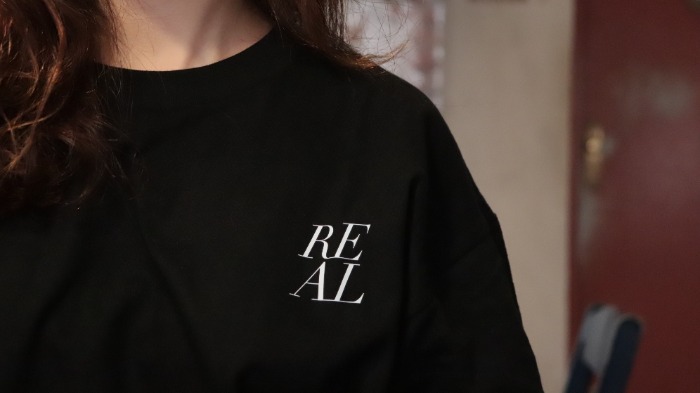 REALLEE, 화이트 REAL 오버핏 티셔츠  굿즈, 굿즈 판매, 굿즈샵