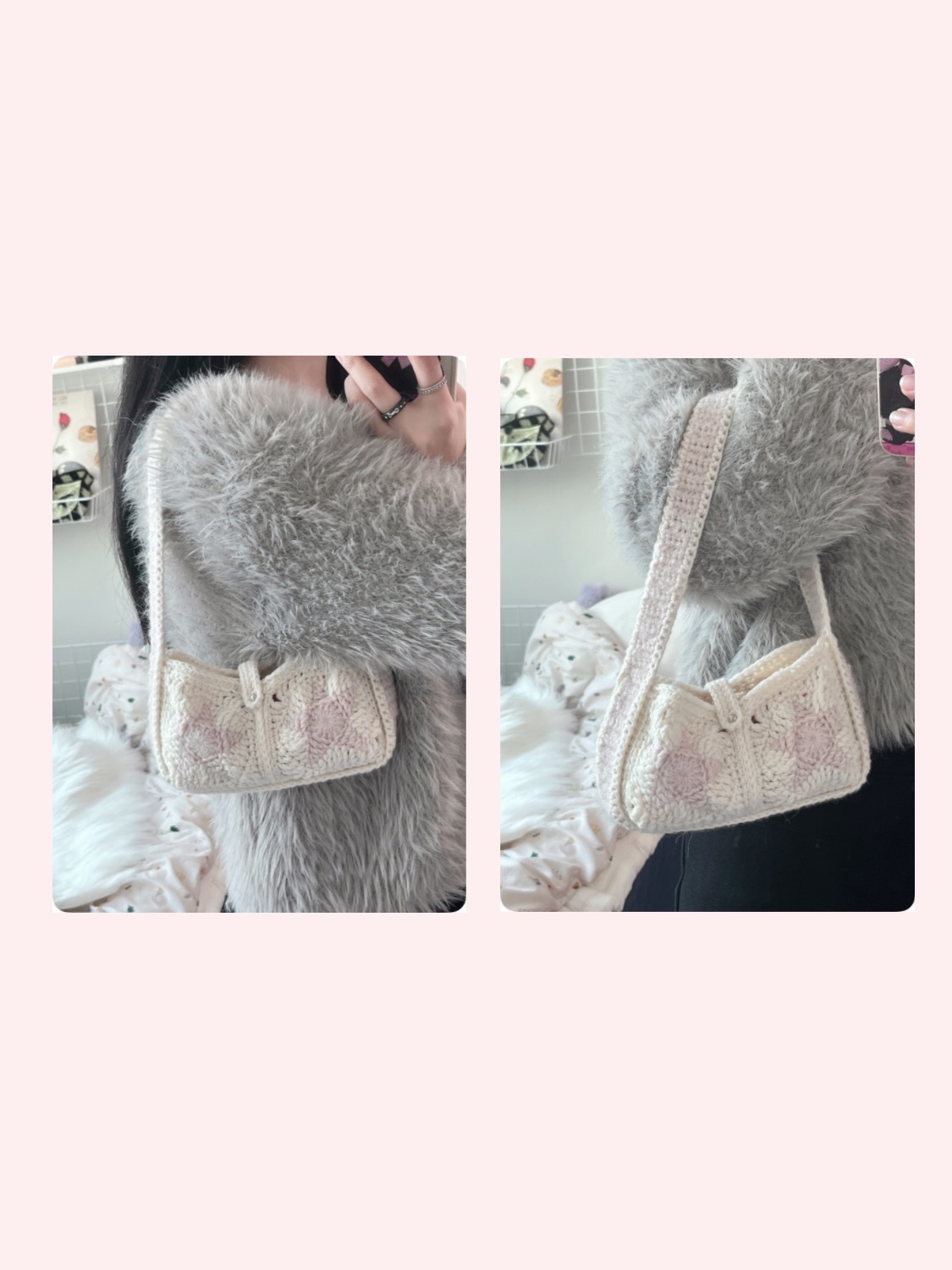 - 주의사항 : 100% 핸드메이드 상품으로 0.5cm ~ 1cm의 사이즈 차이가 있을 수 있으며, 사용하다 튀어나오는 실은 마감 처리 부분으로 당기지 않고 안쪽으로 숨겨주시면 그대로 사용 가능합니다.