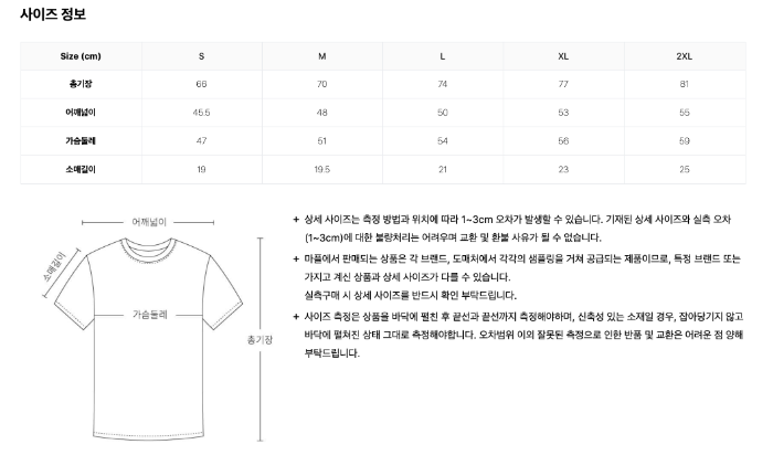 | 소매길이 | 19 | 19.5 | 21 | 23 | 25 |
