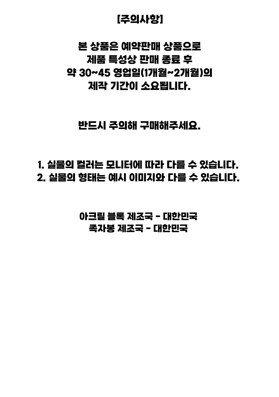 ※ 본 상품은 예약판매 상품으로 판매 종료 후 30~45 영업일의 제작기간이 소요 됩니다.