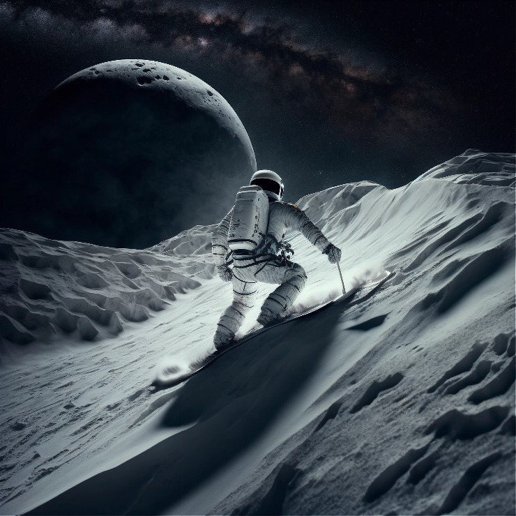 달에서 스키를 타는 우주인
