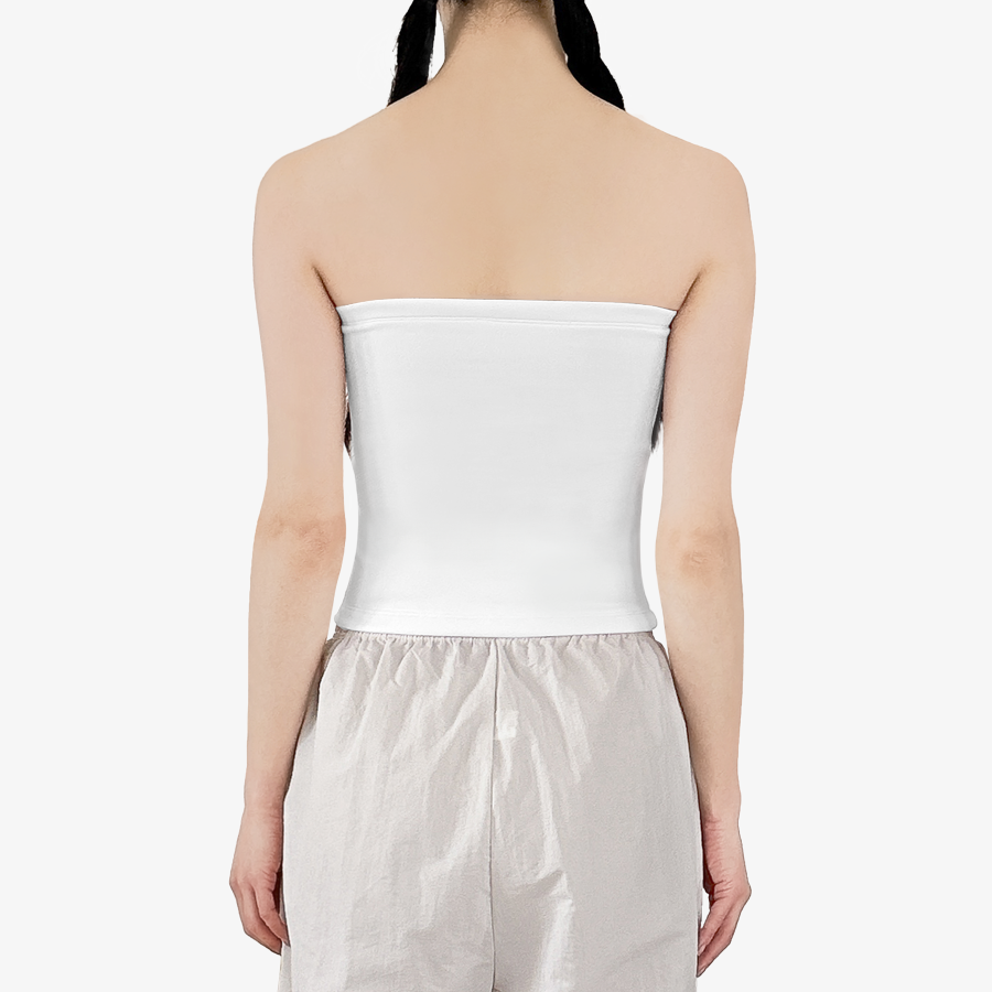 부드럽고 신축성 있는 소재로 제작된 심플한 디자인의 튜브탑입니다.