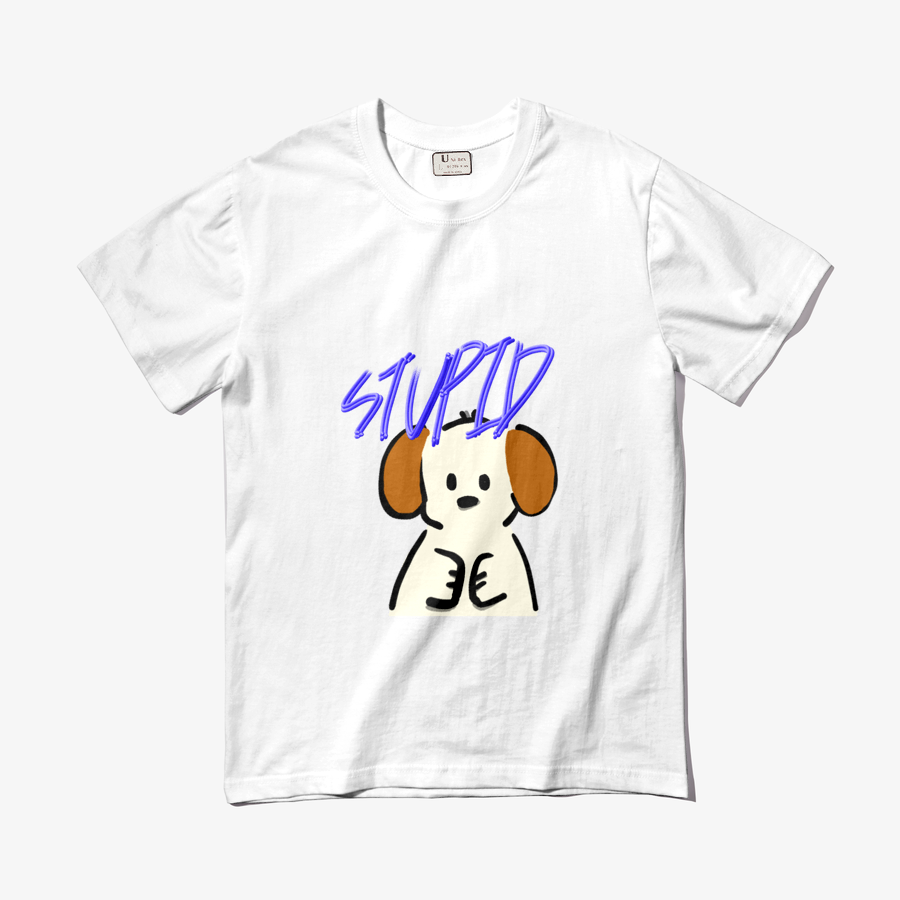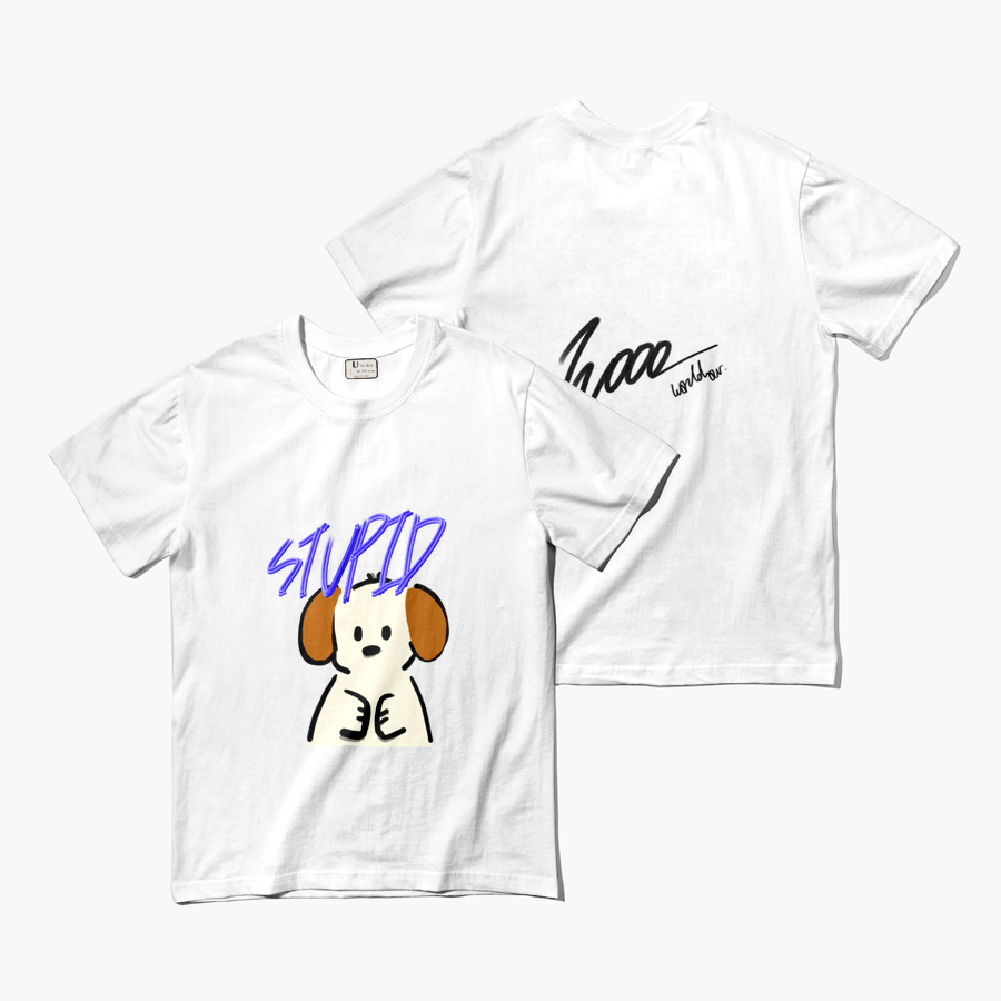 Woo의 시그니처 캐릭터 중 하나인 멍청한 강아지 캐릭터의 티셔츠 입니다.